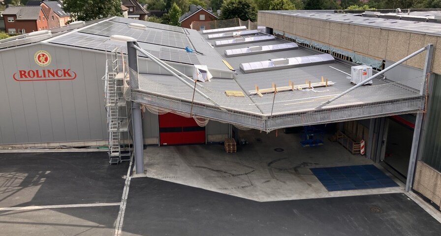 Das neue Stahldach im Bereich der Verladung
