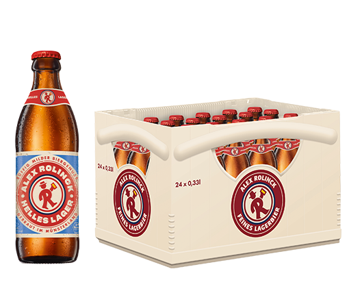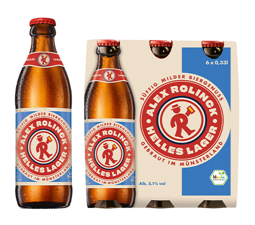Das Alex verspricht als helles Lager einen wunderbar vollmundigen und süffig milden Geschmack. Das feine Malzaroma und die leichte Hopfennote sorgen für ein harmonisch abgerundetes Geschmackserlebnis. So ist es die westfälische Interpretation des Hell-Bieres – mit 5,1% Vol. Alkohol.